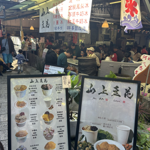 除了豆花還有賣杏仁茶、燒麻糬、刨冰