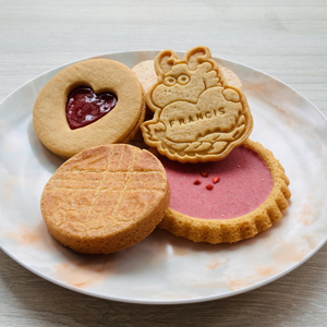 餅乾系列起司的有加起司粉,不是純造型,老鼠造型的就是原味奶油香氣,兩款餅感都是偏薄脆卻又帶點厚度的,只是特色反而是造型。