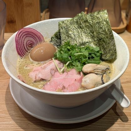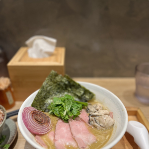 牡蠣熬煮的濃厚湯頭 很鮮甜 不會很腥 也不死鹹 真的愛了❤️ 叉燒肉也很軟 麵條為粗的 雖然我沒有很愛粗麵條 但還蠻好吃的!!最畫龍點睛的是洋蔥✨甜甜帶點炙燒的味道 很好吃!