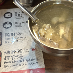 每塊都切的很厚實,所以除了咬起來鮮嫩之外,還吃得到一點脆的口感,如果喜歡豬肚的人,也很推薦點綜合湯,不論是豬肝或豬肚都很新鮮好吃,湯頭喝起來也很清爽,在冷冷的天坐在戶外喝上一碗,真的很暖很舒服😌