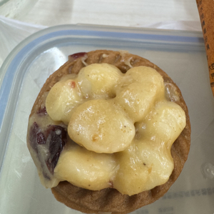 原味夏威夷豆塔,塔皮酥香,有微量蔓越莓,表面有一層糖霜,應該有麥芽