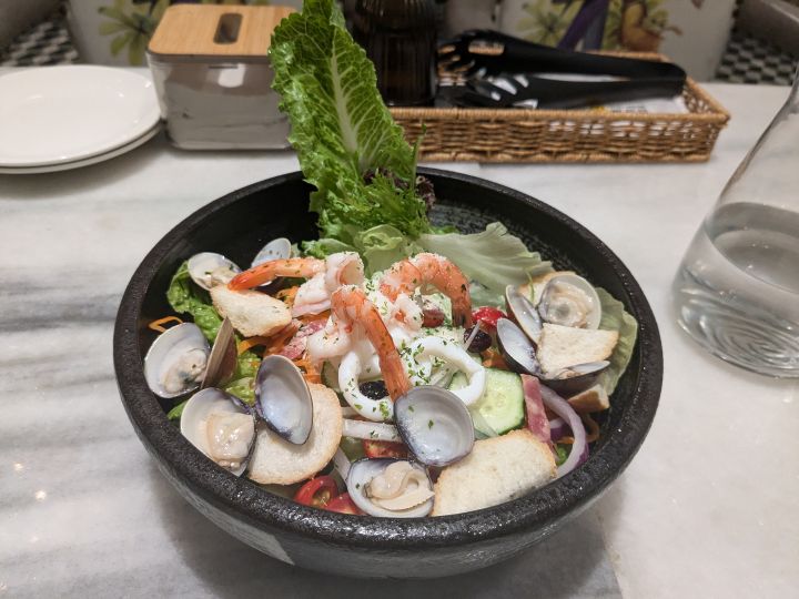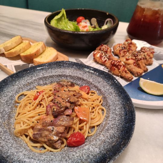 不是真正的麻辣牛奶,而是用胡麻醬的義大利麵,是酸甜酸甜的滋味,也沒有辣味,感覺特別但也覺得口味普通,牛肉切得很薄,沒有口感,份量偏少