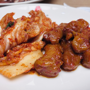 渼渼全部採自助式的,有蔬菜吧、小菜區、肉食區、熟食區、湯品、飲料吧,選項很豐富,肉品都是醃過的很香很好吃,因為我本身不吃牛肉,羊肉味道又太重,所以只選擇豬肉和雞肉,豬肉是那種一整片的,雞肉則是一條一條很好入口,烤好的豬肉大小放上一些泡菜,完美👌🏻