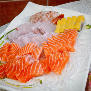 沒想到老闆說最近鮭魚太貴硬是幫我們切了500