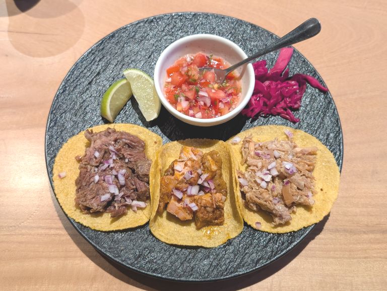 嚴選軟嫩微嚼勁牛腩搭配墨式香料、香菜、洋蔥以及自製莎莎醬!Taco表皮微脆Q彈滿滿料香氣十足很清爽😌 還可以選擇幾入~