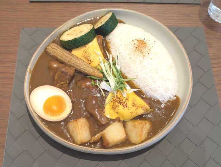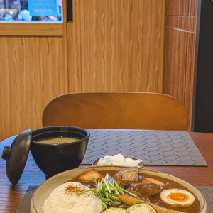 食材可客製化調整(櫛瓜不吃,店家換成了玉米筍、飯量可選半飯),對於挑食的我是一大益處;豬肉使用的是豬頰肉部位,燉煮軟嫩入口即化、半顆半熟蛋、三大塊煎煮過的帶皮馬鈴薯、熟成日式料理醬,整體吃起來可圈可點,非常值得再訪。