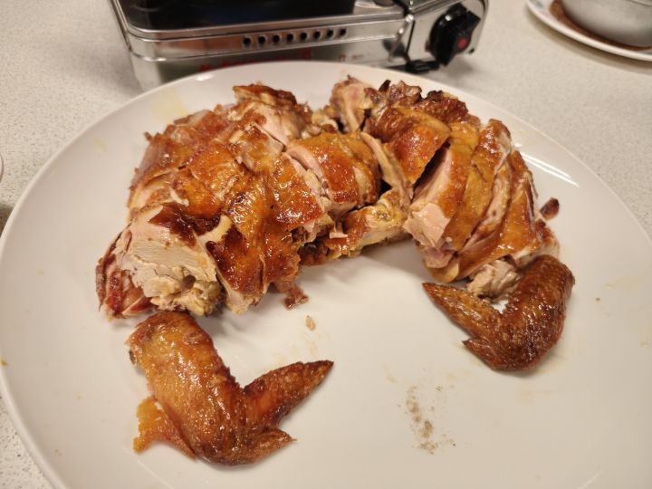 烘烤過的外皮、彈牙鮮嫩的肉質,口感跟一般的白斬雞不同😋