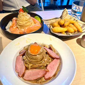 鹹食的部分#巴薩醋嗆辣鴨胸義大利麵 用了寬扁麵提升了口感的層次,搭配酸鹹有勁的巴薩醋醬汁,鴨胸肉質Q彈也很夠味,非常適合喜歡重口味的朋友 #松露野菇燉飯 滿滿的野菇鋪滿整盤,濃郁的奶香與松露的香氣完美結合,喜歡奶香重的朋友一定要試試。 #烤雞腿沙拉 這道沒有另外添加沙拉醬 透過煎烤後的雞腿帶著自然的油脂香氣,與清爽的蔬菜完美搭配,吃起來健康又滿足。
