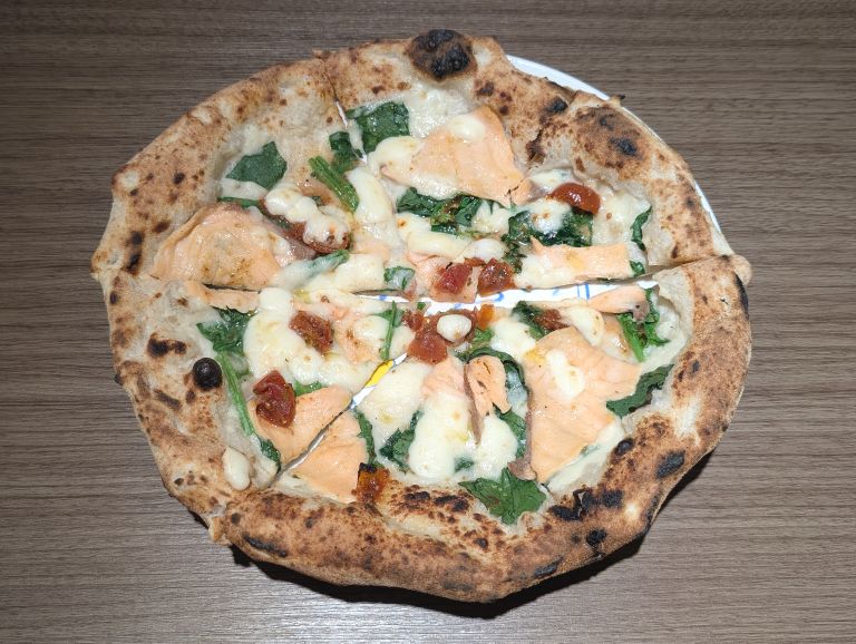 這次吃到菠菜煙燻鮭魚披薩啦!YA!