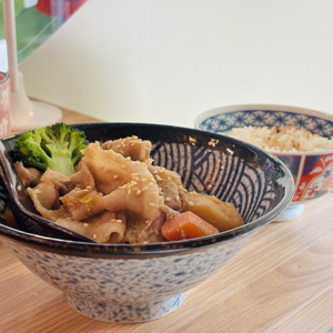 兩隻豬的日常丼飯份量不大,馬鈴薯燉肉,肉質不太好,不推薦。