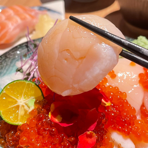 🍋生食干貝每顆都不小又新鮮~加上#鮭魚卵 增添豐富的口感,干貝中間夾著#檸檬 酸啊
