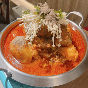 份量頗大的,建議多人點分食吃♡不吃辣的好選擇,底部有超多冬粉,飽足感十足!雞肉給超多塊且超嫩,配料還有馬鈴薯🥔紅蘿蔔🥕和洋蔥🧅