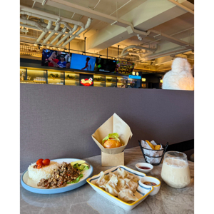 位於后里著名的複合式餐廳 結合了娛樂設施 像是遊戲機台和觀賞賽車的景觀✨✨ 餐點多樣化選擇 味道還不錯吃 美食搭配娛樂 很適合聚餐及消磨時間☺️☺️ ‼️低消 NT300/人 ‼️食回票價 NT1000 (A+B+飲品一杯) A: 水餃/鳥他的蛋殼布蕾/蔬菜羅宋湯 B: 鮮蝦蛤蠣飯/麵花枝蝦排堡/泰式打拋飯 (豬|牛) #后里美食