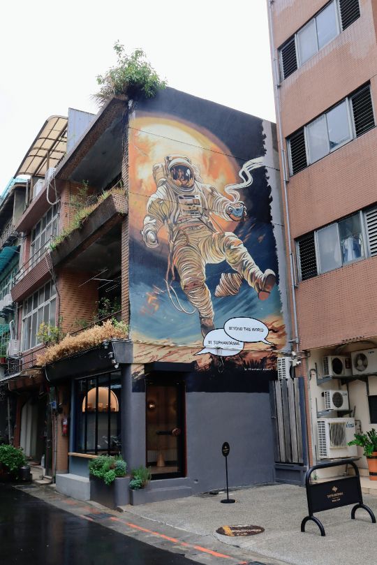 太空人壁畫很顯眼 店面凸出設計很有外國感