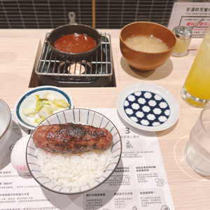 前陣子總算如願造訪位於大巨蛋「漢堡排 嘉」的新分店。點了推薦的牛舌漢堡排定食,包含三顆漢堡排、無限白飯、生食級雞蛋及多款醬料。