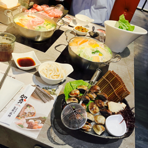 Remiii以前覺得這家店定價蠻高的,而且吃不飽,隔了這麼多年回來二訪,給的份量修正很多!吃完覺得飽足感也夠~這次點黑毛豬,一盤有九塊肉搭配昆布高湯,烏龍麵口感很有彈性,菜盤份量也很豐富,沒有太多佔位子的火鍋料,整體相對健康許多,用餐途中有自助飲料吧、冰沙、醬料區可以自行取用,甜點是芋泥仙草搭配奶精。