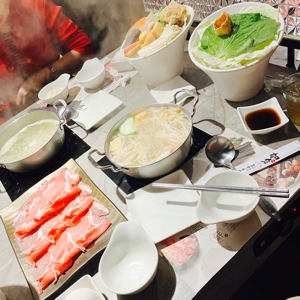 包含義式白醬(應該就是牛奶起司鍋)、南洋咖喱、川味麻辣(可調整辣度)、韓風泡菜、藥膳湯底