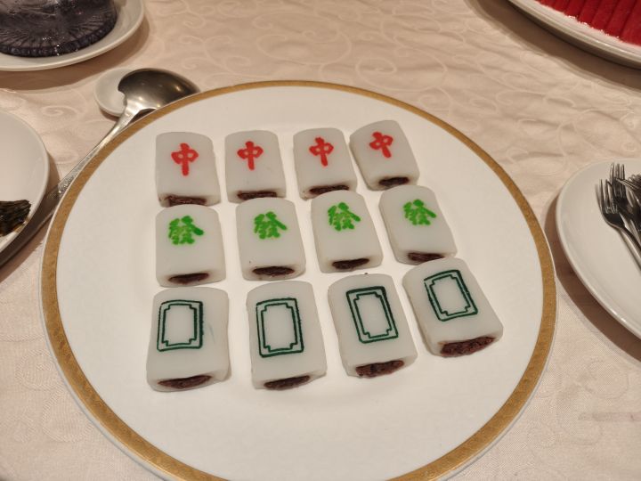 Simon老饕來「大三元酒樓」聚餐,陳副總贈送印有麻將大三元的甜點。